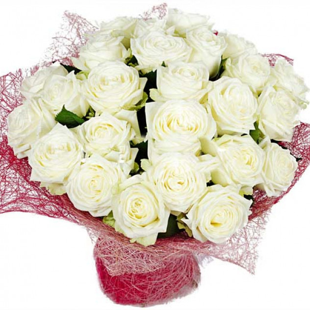 Роза белая 60 см 27шт., Упаковка для букета: сезаль, Салал 10шт.