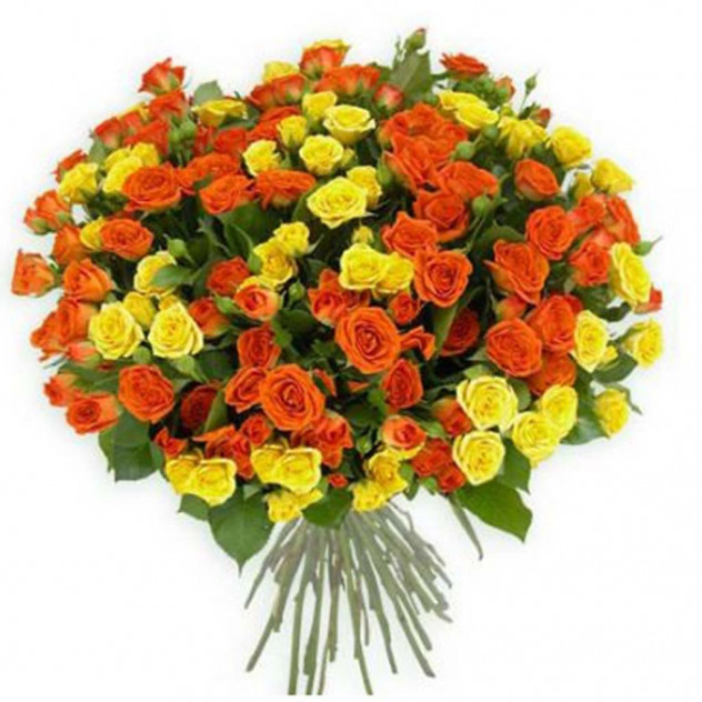 Букет выполнен в солнечных тонах желтого и оранжевого цветов и принесет Вам только радость!