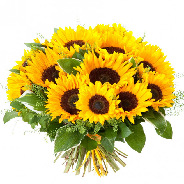 Хелиантус (подсолнух) 19шт., Рускус 20шт., Грин белл 5шт.