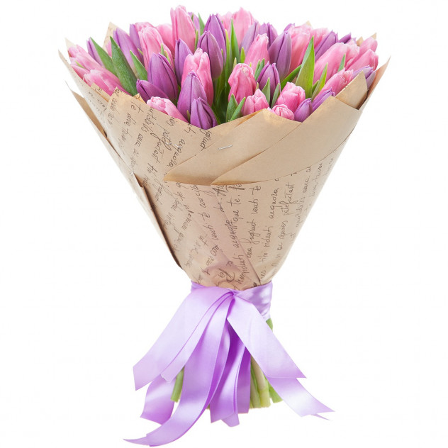 Состав: Упаковка для букета: прозрачная пленка с лентой, Упаковка для букета: крафт-бумага, Тюльпан 31шт.